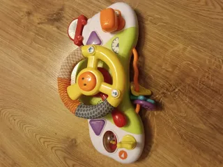 Juguete musical y de actividades con diseño de cervatilla. - Tres teclas con números y dibujos de insectos. - Rueda giratoria con un ciervo. - Asa para colgar y mordedor. - Altavoz integrado. Funciona perfectamente