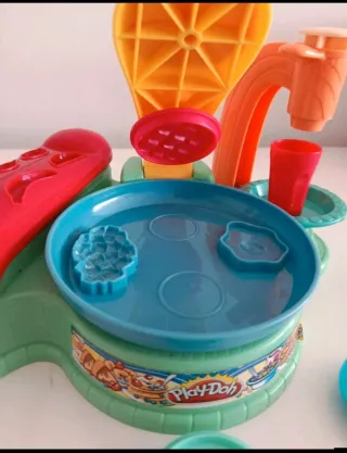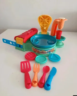 ➡️ Set de juego Desayunos de Play Doh. Incluye lo que se ve en las fotos: una base con plancha, cuchara, tenedor, cuchillo, espátula, vaso, prensa para batidos, 3 sellos para plancha, accesorios de riel y plato para servir. 🗓️ Recomendado a partir de 3 años. 📦 Sin caja original. ℹ️ En muy buen estado. #playdoh #setjuegoplaydoh #desayunosplaydoh #plastilina #pastademodelar #juguetes