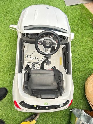 Coche de juguete infantil con diseño deportivo. - Color blanco. - Detalles AMG. - Volante negro.