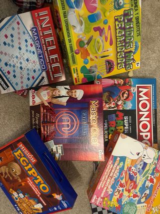 Lote de juegos de mesa para toda la familia. Incluye varios títulos populares. - Monopoly - MasterChef Familia - Misión Egipto - Intelect Magnético con pocas piezas - Fluidos Pegajosos - La Película Super Mario Bros. - Érase una vez... La Vida