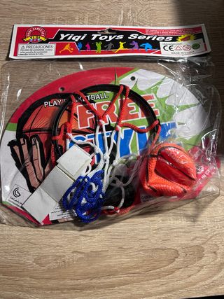 Set de mini baloncesto de la serie Yiqi Toys. - Incluye canasta, red y pelota. - Diseño colorido con temática de baloncesto.