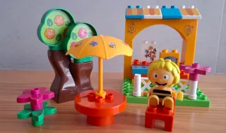 Set de construcción con piezas de la abeja Maya para construir su tienda de miel. Se incluyen todas las piezas y la figura.