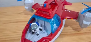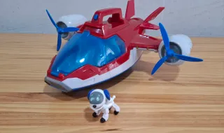 Avión de juguete de la Patrulla Canina. Se abre el maletero y la cabina. Boton con Liz y sonido. Se incluye la figura de perro.