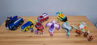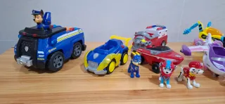 Lote de vehículos y figuras de la Patrulla Canina. Se incluyen varios vehículos de rescate. Varios cachorros de la Patrulla Canina. (Por separado cada vehículo con su figura a 7€ y super precio todo el lote entero a 35€)