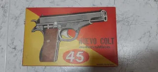 Pistola de juguete vintage Nuevo Colt 45 Automático de CEFA. Un clásico para coleccionistas. Dispara bolas con muelle. - Diseño inspirado en el Colt 45. - Fabricada en plástico. - Incluye la caja original.