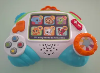 Consola de juegos interactiva VTech para bebés, con diseño de mando. - Divertidos animales y números en la pantalla. - Botones de colores y ruedas. - Incluye un personaje de tigre en la parte superior.