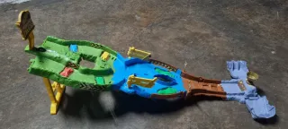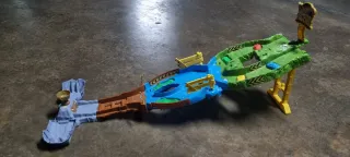 Pista de juego Hotwheels Monster Trucks con rampa y obstáculos. - Pista de color azul y verde. - Incluye rampa de lanzamiento. - Diseñada para camiones Monster Trucks.