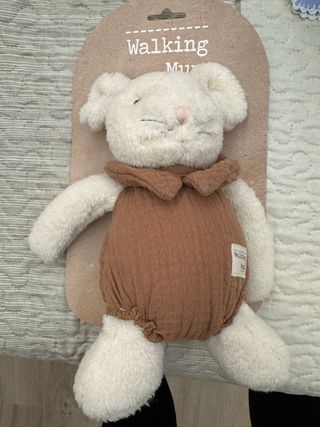 Adorable peluche de ratón de la marca Walking Mum, perfecto para los más pequeños. Suave y tierno. - Diseño de ratón. - Vestido con un mono marrón. - Material suave y agradable al tacto.