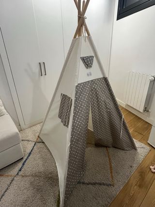 Tipi de juguete con un puerta y ventana.