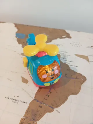 Divertido helicóptero de juguete con luces y sonidos. Habla y canta en Francés. - Diseño colorido en azul y amarillo. - Cara sonriente con detalles. - Hélice giratoria.