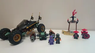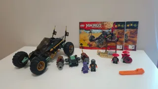 Set de construcción Lego Ninjago 70638. - Incluye vehículo rojo y amarillo. - Figura de ninja con espadas. - Moto negra con figura de ninja. - Pieza naranja. Viene con todas las piezas i las instrucciones. Ha sido abierto y montado para jugar, pero siempre ha estado muy bien cuidado. Lo puedo vender montado o desmontado, como se prefiera. El precio es negociable ya que no lo vendo para ganar dinero, sino porque ya no los uso y necesito espacio.