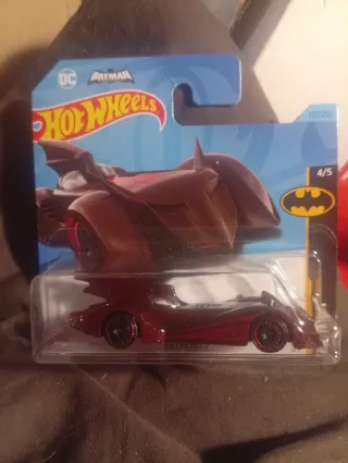 Coche de juguete Hot Wheels de Batman. - Diseño inspirado en el universo DC Comics. - Color rojo metálico.