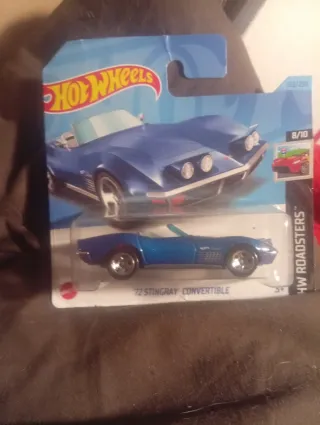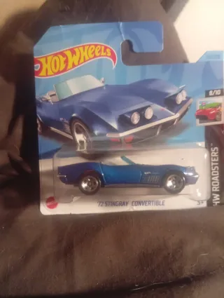 Coche de juguete Hot Wheels, modelo 72 Stingray Convertible. - Color azul metálico. - Diseño de coche deportivo descapotable.