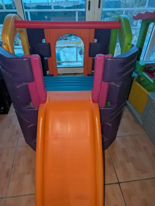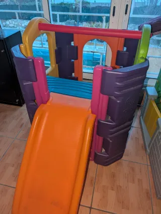 Parque de actividades infantil Feber con tobogán/escaleras. - Estructura de plástico resistente y colorida. - Tobogán de color naranja. - Barras de protección en la parte superior.