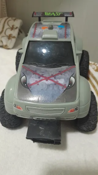 Coche de juguete con diseño deportivo y detalles llamativos. Spoiler trasero con la palabra BEAST. Decoración frontal con ojos de animal y líneas rojas. Esta en perfecto estado. Lo entrego como se ve en las fotos