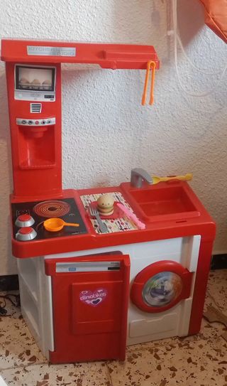 🍳 Cocinita Kitchen Studio en color rojo vibrante, ideal para que los peques se diviertan imaginando que son grandes chefs. 🧺 Incluye zona de fogones, fregadero, horno y hasta una pequeña lavadora incorporada. Viene con accesorios de menaje y comida de juguete para empezar a jugar desde el primer minuto. ✅👌 Está muy cuidada, limpia y lista. Juguete resistente y seguro, perfecto para regalar sin gastar mucho dinero.