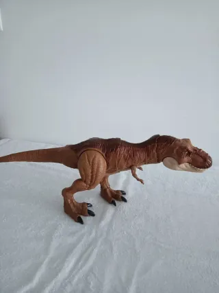 Figura de Tiranosaurio Rex de color marrón. - Diseño detallado con textura de piel. - Mandíbula articulada. - Patas y brazos móviles.