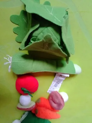 Set de verduras de juguete para que los más pequeños aprendan y jueguen. - Incluye tomate, cebolla, zanahorias y otras verduras. - Fabricado en tela suave. - Diseño colorido y atractivo.