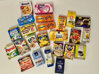 Gran variedad de alimentos de juguete para horas de diversión. - Incluye frutas, verduras, pan, dulces y más. - Envases de cartón. - Piezas de plástico de colores vivos. - Ideal para juegos de imitación y aprendizaje.