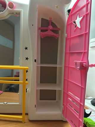 Divertido juguete Studio Dance de Nancy, ideal para imaginar y crear. - Diseño inspirado en un estudio de danza. - Armario con perchas - Espejo frontal. - Valla delantera amarilla - Plataforma giratoria