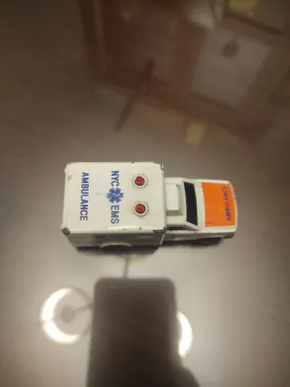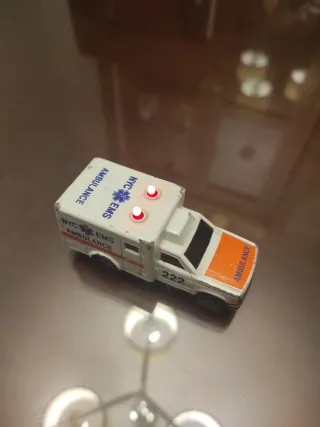 Juguete de la marca Majorette de principios de los 90, que emite luces y sonido de ambulancia. Reacondicinado. Se ha reparado la electrónica interna y funciona bien.