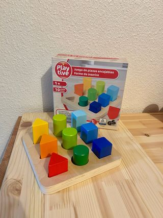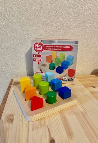 Juego de encajables de madera de la marca Playtive. - Para niños a partir de 1 año. - Fomenta el reconocimiento de formas y colores.