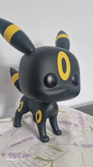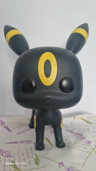 Figura coleccionable de Umbreon, personaje de Pokémon, en formato Funko Pop. - Diseño detallado del Pokémon. - Color principal gris oscuro con detalles amarillos. ORIGINAL ALTURA 27 cm.