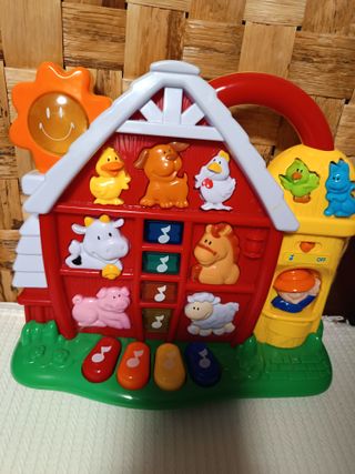 Divertida granja musical para los más pequeños, con animales y teclas. - Incluye figuras de animales como pato, perro, gallina, vaca, caballo, oveja y cerdo. - Teclas de colores con notas musicales. - Sol interactivo con cara sonriente. - Figuras de pájaros y conejito en la torre. - Incluye un personaje de granjero.