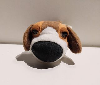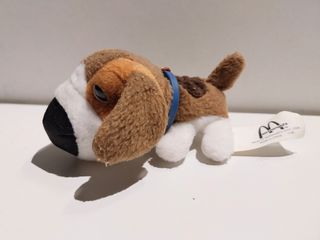 Pequeño peluche de perro cabezón, promoción de hace unos años de McDonalds. Medidas en la última foto. El collar de plástico se puede abrir y girar para usar como llavero o colgarlo de bolsos o mochilas. Se puede entregar en mano en Gijón (Asturias).