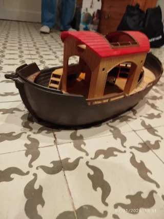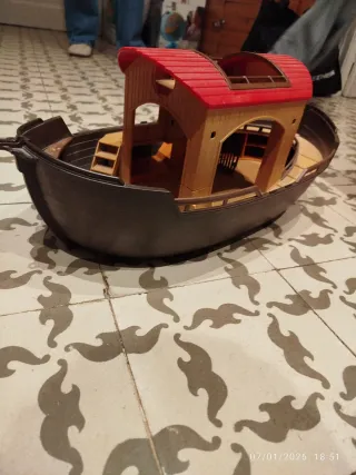 Barco de juguete de Playmobil, ideal para coleccionistas o para que los más pequeños disfruten. - Diseño detallado. - Techo rojo. - Escaleras interiores.