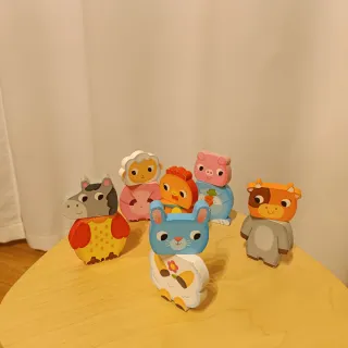 Juguete de construcción y clasificación de formas de madera. - Incluye diferentes bloques con formas geométricas. - Diseño con temática de granja y animales. - Edad recomendada: a partir de 24 meses.