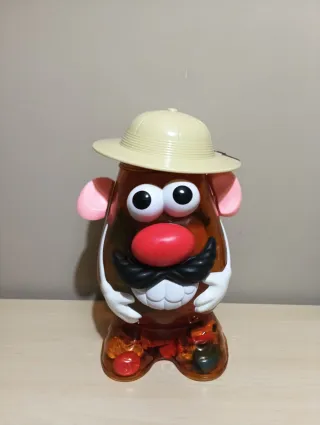 Divertido juguete de Mr. Potato Head con temática de safari. - Incluye sombrero de explorador. - Accesorios intercambiables para crear diferentes looks. - Cuerpo transparente con accesorios en su interior.