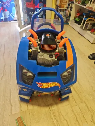 Divertido coche de juguete con diseño inspirado en Hot Wheels. - Color azul vibrante. - Detalles de motor y escape. - Ruedas visibles.