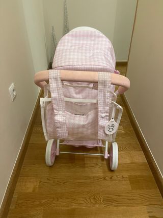 Trona de juguete para muñecos, con posibilidad de 3 posiciones diferentes. Asiento acolchado en color rosa y gris. Apenas sin uso, en muy buenas condiciones. Se vende por no usar.