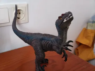 Figura de dinosaurio articulado color rojo de unos 13 cm. Si le aprietas la cola estira el cuello y da mordisco. Para envío, si quieres aprovechar el porte, mira mi perfil por si te interesa añadir otra cosa. 😉