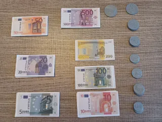 Set de billetes y monedas de juguete de la tienda Imaginarium. Ideal para juegos. - Billetes de 5, 10, 20, 50 y 500 euros. - Monedas de diferentes valores. NO ENVÍO