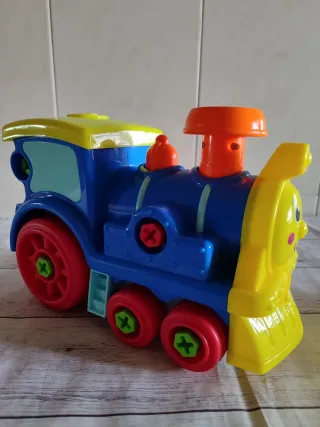 Divertida locomotora de juguete para que los más pequeños construyan y jueguen. Sus piezas de colores estimulan la creatividad. Juguete de ensamblaje de bricolaje y herramientas de juguete. Juego de tuercas, incluidos tornillos, tuercas, destornillador, llave, etc.
