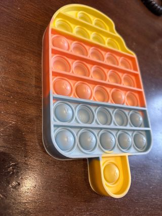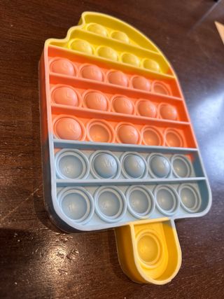 Divertido juguete sensorial con forma de helado. - Diseño colorido con degradado. - Material de silicona. - Ideal para estimular los sentidos.