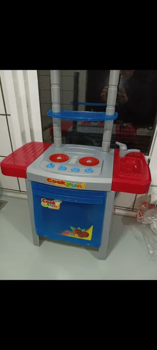 Divertida cocinita de juguete Cook Fun! para horas de entretenimiento. - Diseño colorido con detalles de cocina. - Incluye fregadero y fogones. - Puerta de horno. - Estantería superior. Accesorios no incluidos.