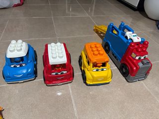 coches y camion de megabloques, cuatro juguetes de megabloques. En perfecto estado casi nuevo.