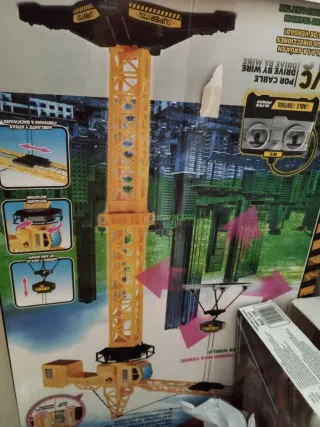 Grúa torre de juguete con control remoto por cable. - Funciona con cable. - Movimientos en varias direcciones.