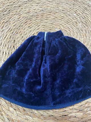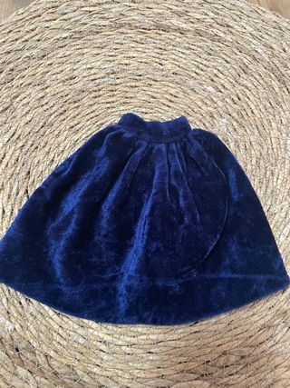 Falda de terciopelo azul marino, parte del conjunto Lesly de Famosa. - Material: Terciopelo. - Color: Azul marino. - Diseño: Con pliegues en la parte superior.