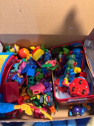 Cajón de superzings con muchísimos muñecos, robots minicoches.