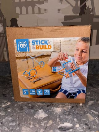 Set de construcción Stick & Build con 126 piezas para crear diferentes modelos. - Incluye varillas y conectores. - Fabricado con plásticos reciclables. - Fomenta la imaginación y la creatividad.