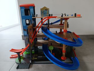 Parking de juguete de madera de la marca Lidl. Ideal para horas de diversión. - Construcción de madera. - Rampas azules. - Niveles múltiples.