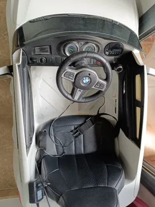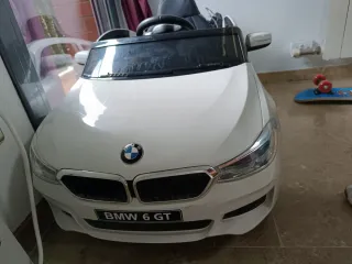 Coche eléctrico infantil con licencia oficial BMW. - Diseño deportivo inspirado en el BMW 6 GT. - Color blanco brillante. - Placa BMW 6 GT en la parte delantera.