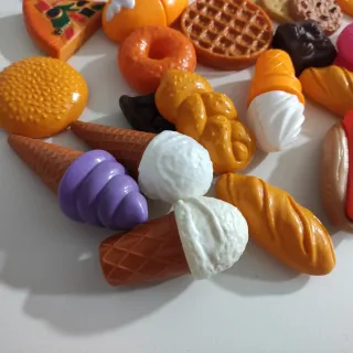 Conjunto de alimentos de juguete para cocinitas. - Incluye variedad de piezas de comida. - Ideal para juegos de imitación. - Diseñado para fomentar la creatividad.