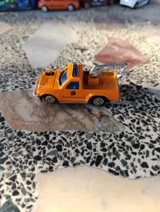 Camión de juguete Super Concord. - Color naranja. - Detalle de Construction en el lateral. - Grúa en la parte trasera.