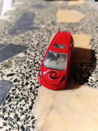Pequeño coche de juguete Honda Fit en color rojo. - Diseño deportivo con detalles gráficos. - Ventanas transparentes.