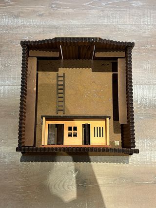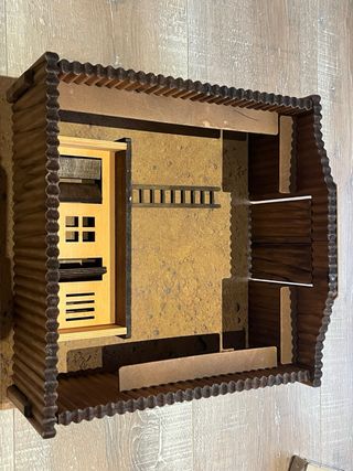 Fuerte de juguete de madera con detalles de casa y escalera. - Estructura de madera. - Diseño de casa con ventanas y puertas. - Incluye escalera.